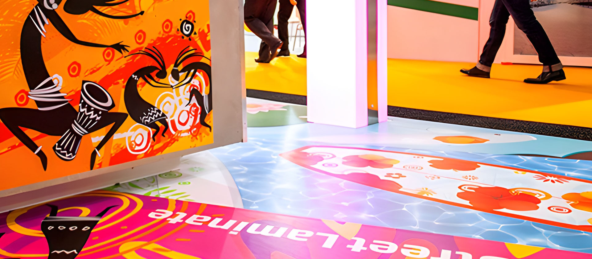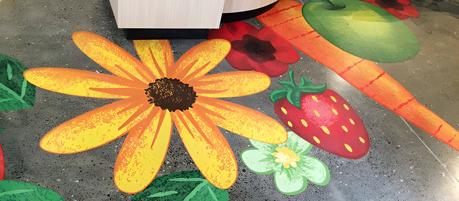 U brendiranju, obilježavanju i dekorisanju enterijera , posebno u segmentu retail-a, primjenjuju se tehnike podnih grafika. Na svim drvenim, mermernim, metalnim, keramičkim i granitnim podlogama mogu se aplicirati štampane i po konturama rezane folije za podnu grafiku koje će dekorisati ili obilježiti željeni pod.